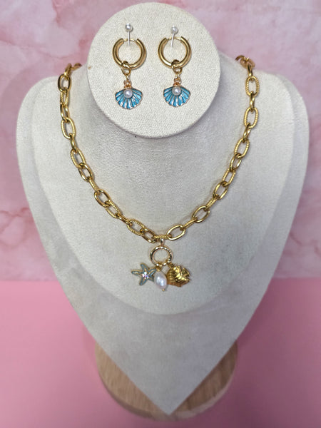 Dive into style with our Sealife Set – a splash of underwater magic wrapped around your neck and ears! This waterproof duo features a necklace paired with matching earrings, both designed to handle whatever adventures come your way. The best part? Swap out the interchangeable charms on the necklace whenever the mood strikes, letting you refresh your look without the commitment. Perfect for ocean lovers, beach days, or anyone who wants jewellery that's as versatile as it is durable. Make waves with every wear.