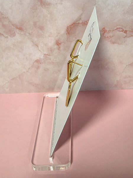 Our Stella Huggies bring celestial magic to your everyday look. Featuring unique triangle-shaped huggies and a charm dangle inspired by the stars themselves. Perfect for adding a touch of cosmic wonder to any outfit, whether you're dressing up for a special occasion or keeping it casual. Lightweight and comfortable for all-day wear, Stella is your go-to pair for celestial vibes and stellar style.