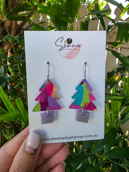 Please note the acrylic pattern (painted by the fabulous Northern Brights) changes from piece to piece due to the placement of the paint making these earrings one of a kind!